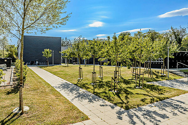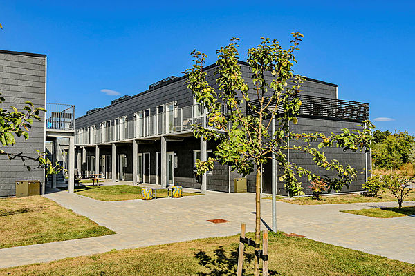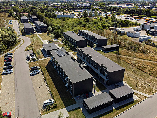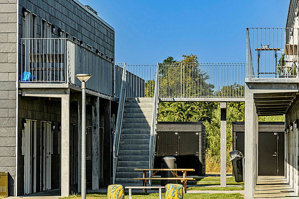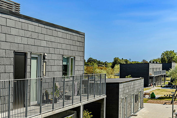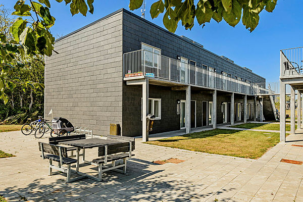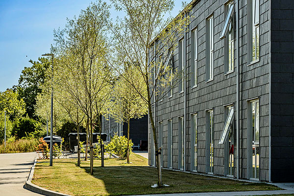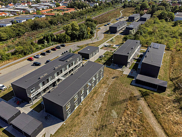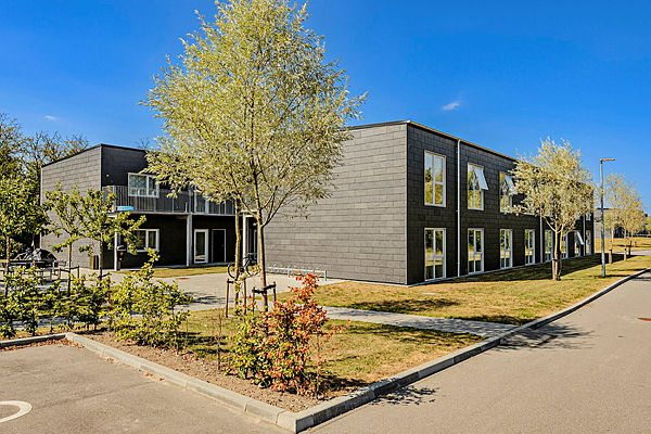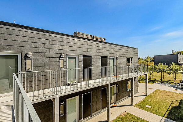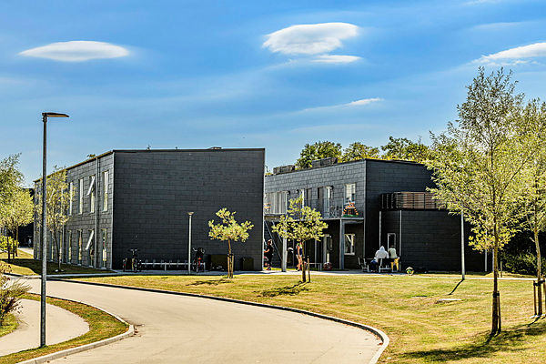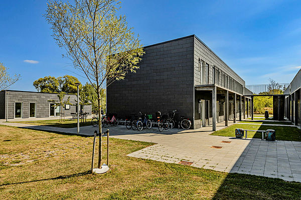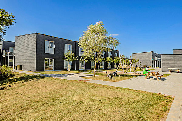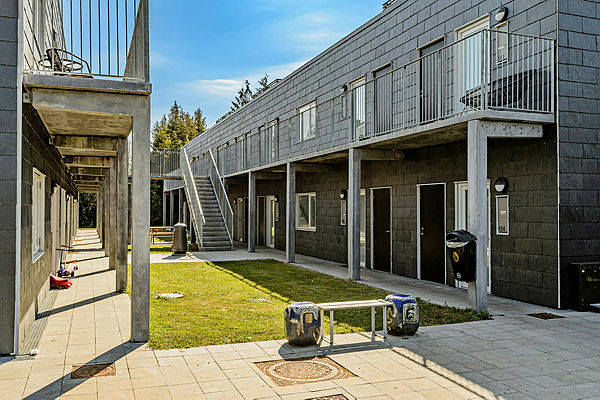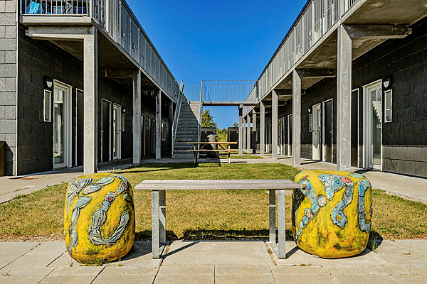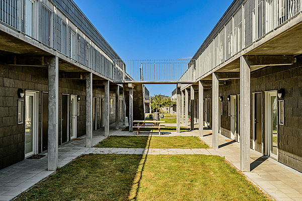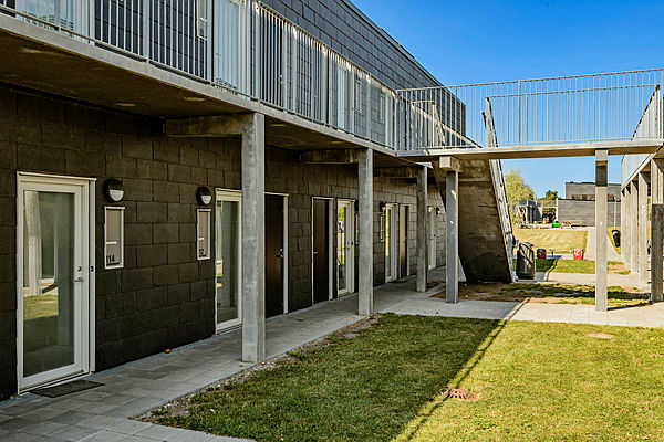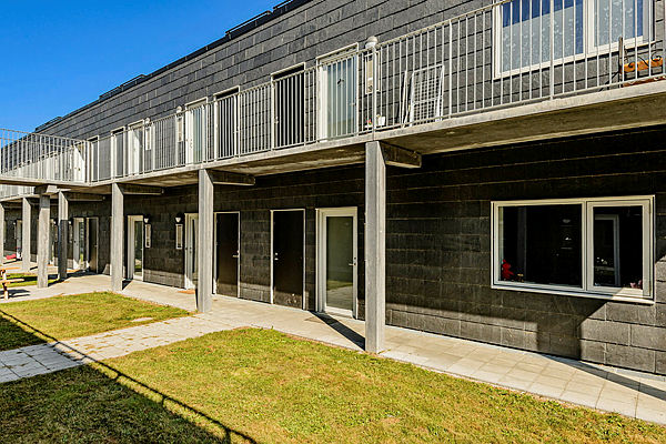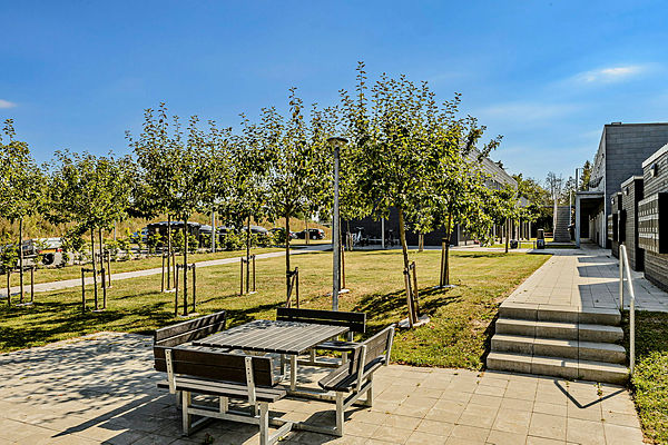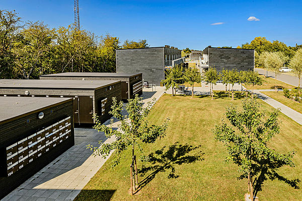 Bygningerne ligger alle langs en blind adgangsvej, mellem de 8 bygninger findes der fælles udendørs arealer med plads til sociale aktiviteter, samt forskellige faciliteter som cykelparkering, depoter, legeplads og fælleshus.