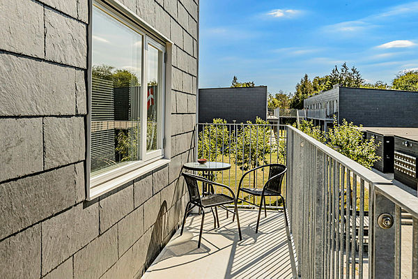 Boligerne har et mindre køkken med kogeplader og ovn, det er muligt at installere eget køle-/fryseskab. I Entre, køkken samt opholdsrum er der egeparketgulv i farven mat hvid.